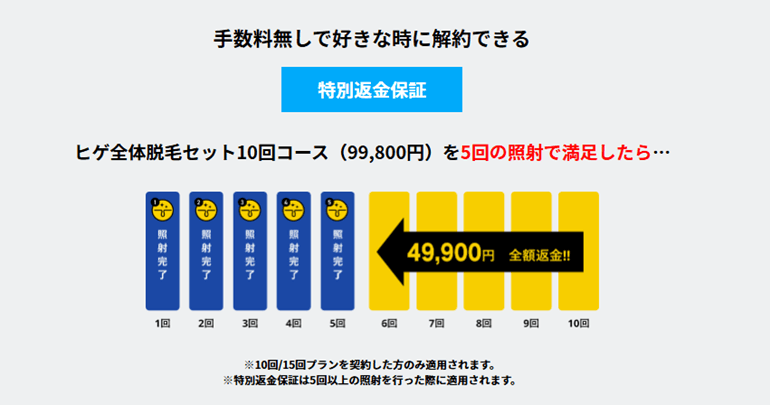 剃り残しは無料 | 10分間無料 | 剃り残しは無料 | 手の届かない範囲 のみ無料 |