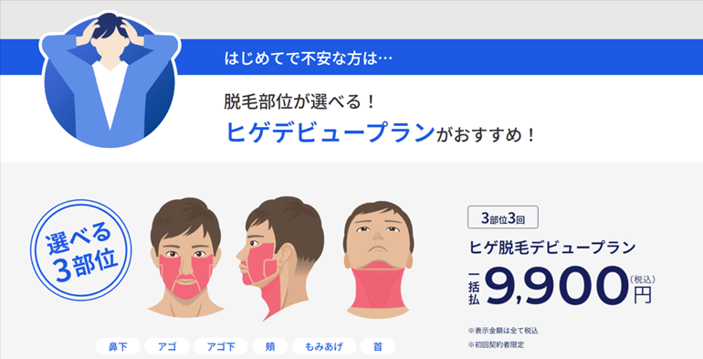 - ・ヒゲ脱毛が3回8,400円でスタートできる!