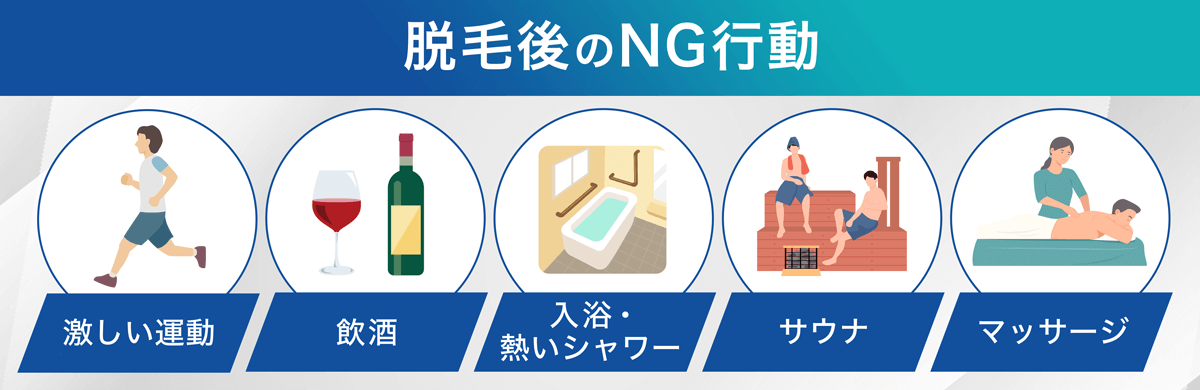 施術直後の肌は熱がこもり、軽い炎症を起こしている状態です。このときに血流を促す行為をすると、炎症が悪化することがあります。
